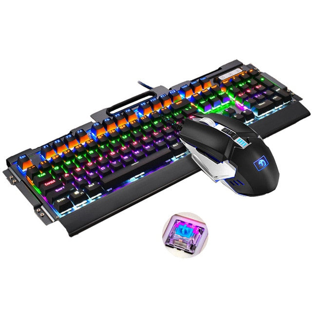 Newest Mechanical Keyboard 104 keys Blue Black Switch LED Backlight USB Gaming Keyboard Mouse Combo for PC Games Teclado