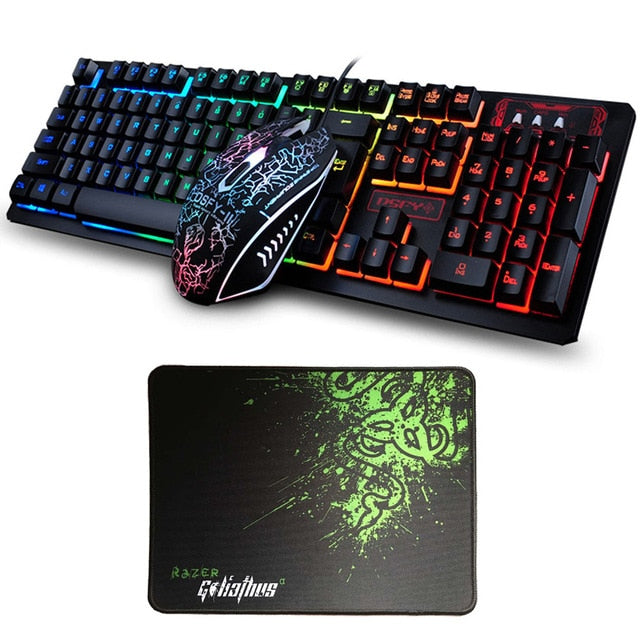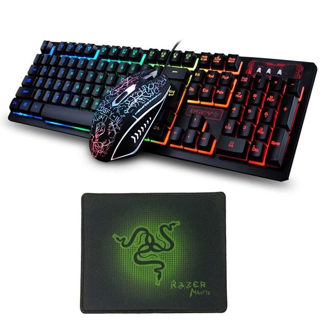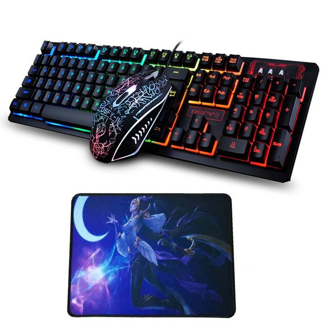 K-13 Usb Wired Rainbow Backlit illuminated Multimedia Ergonomic Gaming Keyboard + 2400DPI Pro Gaming Mouse Sets + Mouse Pad Gift